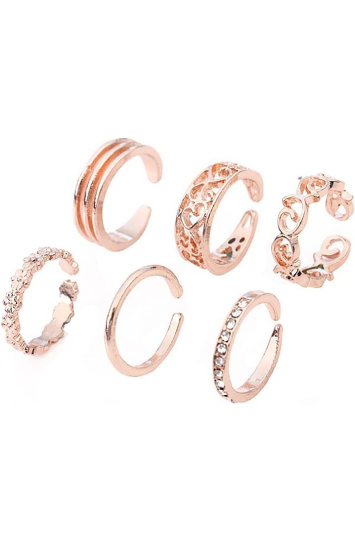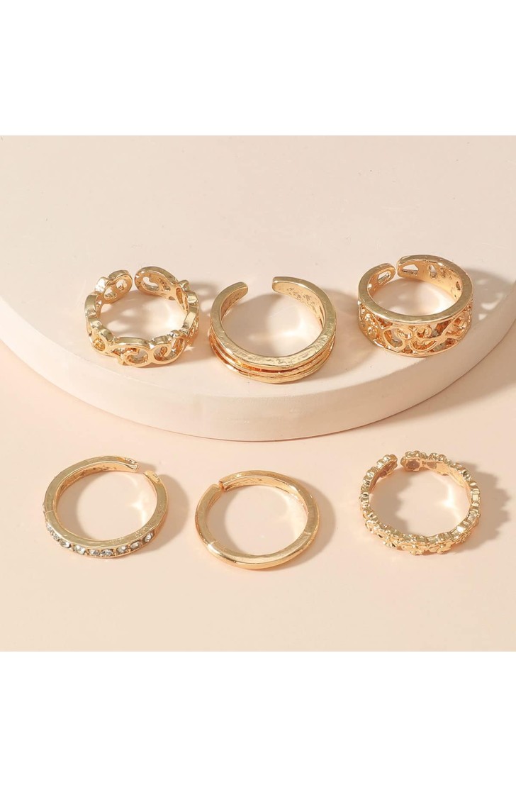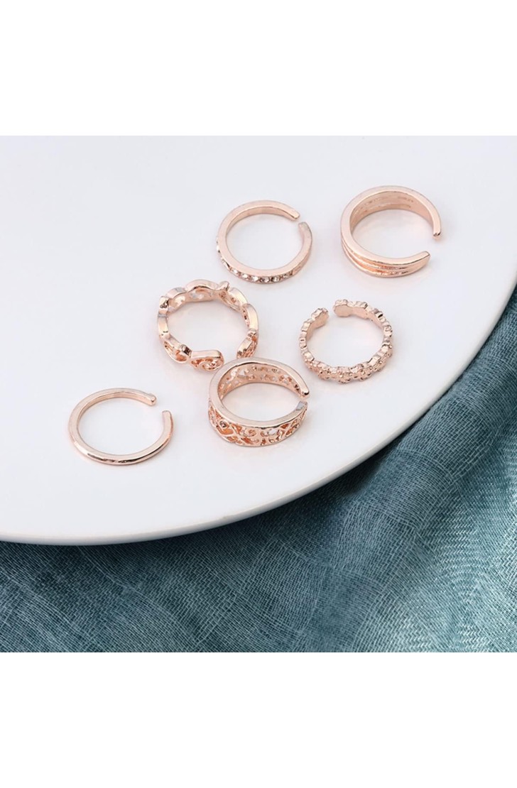 [FUMAJIS] 6点セット指輪 おしゃれ 人気 メンズ レディース カップル ユニセックス フリーサイズ アクセサリー 指輪プレゼント シルバー 合金 連リング ファッションリング調節可能 人気 セット (ピンクゴールド)