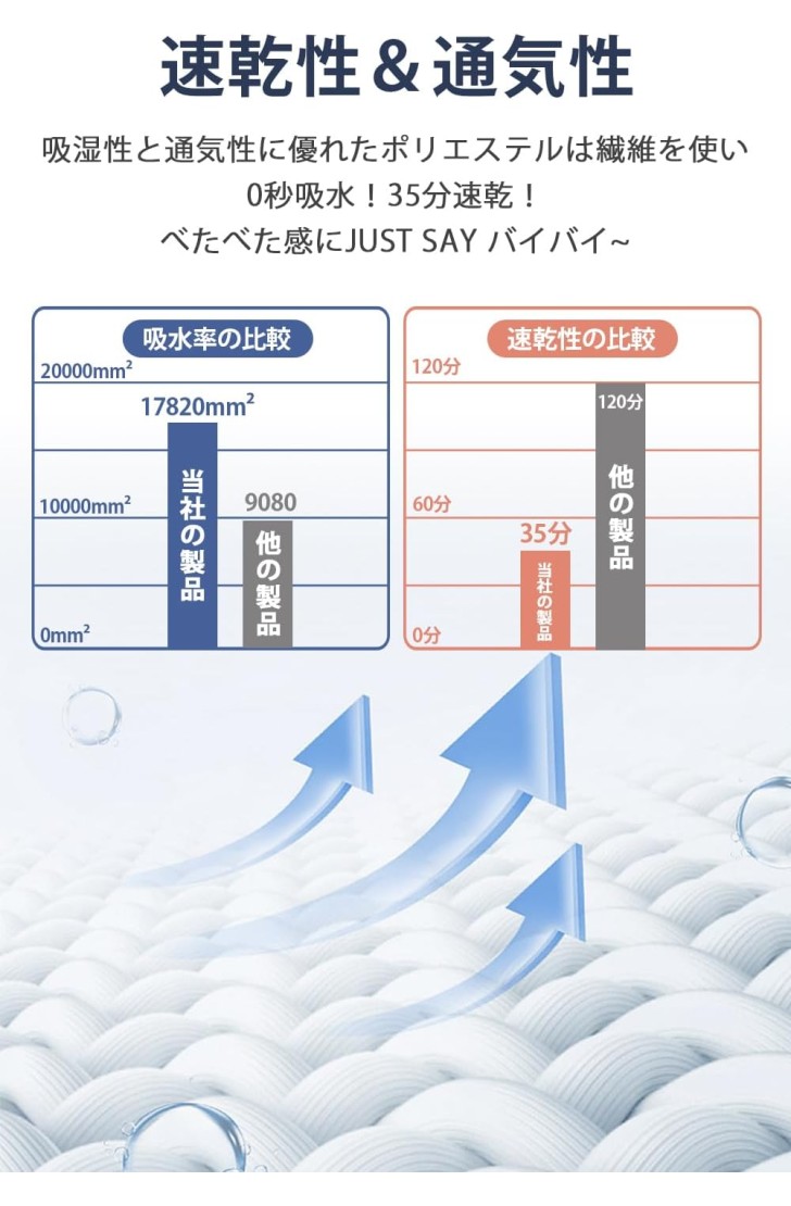 • 【0秒吸水&通気性抜群】吸湿性と通気性に優れたポリエステルは繊維の中に水分率がほとんど0に近いため,水や汗が生地に触れた瞬間にすぐさま拡散して蒸発します。汗ばんでも寝汗をしっかり吸収し、ベタつかず、サラッとした肌触りを保ちます。そのため、年間通し快適にお使いいただけます。