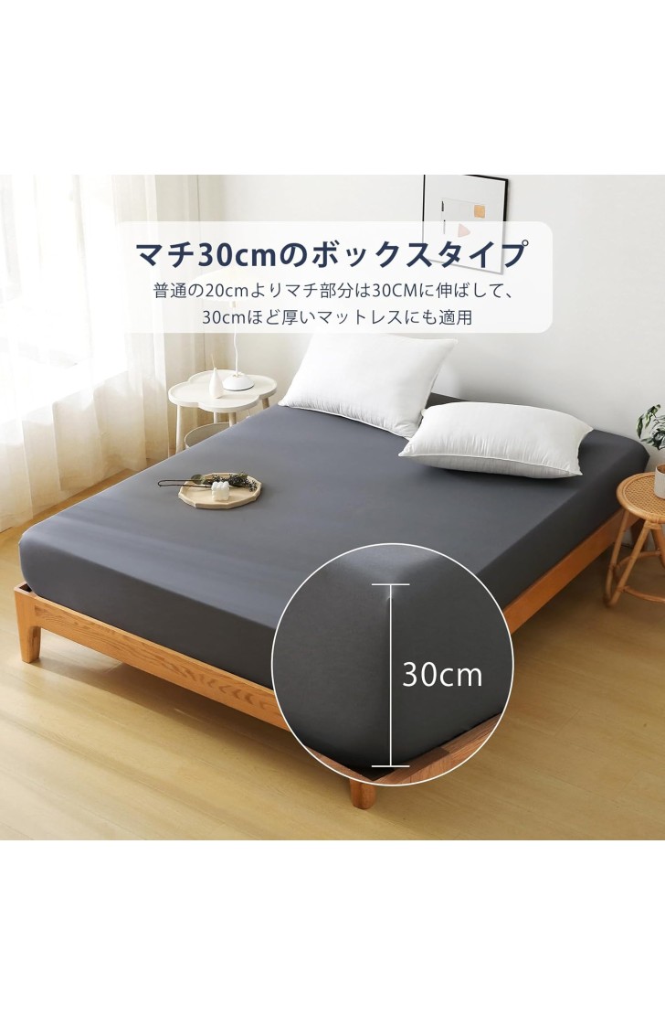 • 【マチ30cmのボックスタイプ】だた30秒で着脱可能!HEVUMYIボックスシーツ全周囲ゴムを裁縫されており、普通の20cmよりマチ部分は30CMに伸ばして、30cmほど厚いマットレスでも四角が簡単でぴったり包まれ、ラクラク着脱できます。また、ゴムバンドに360度巻かれているので、どんなに寝相が悪くてもずれることはなく、マットレスもすっきりと保護してくれます。さらに、ベッド、マットレス、布団など多くの寝具に使用できます。