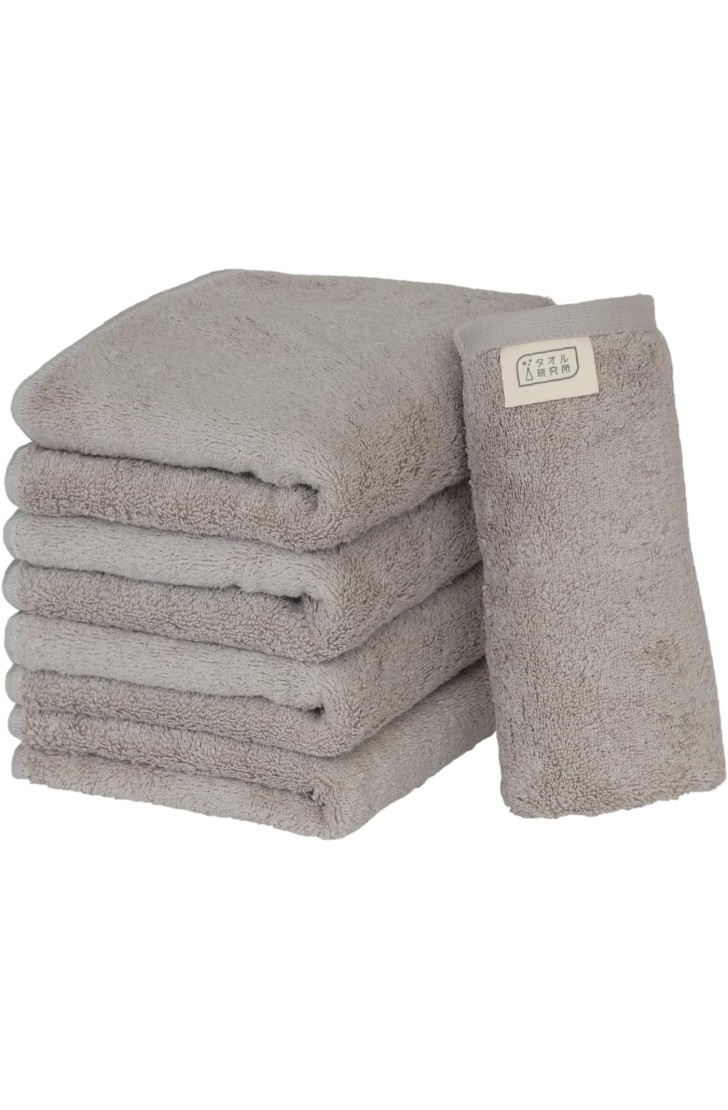 タオル研究所 [ボリュームリッチ] #003 フェイスタオル ライトグレー 5枚セット ホテル仕様 厚手 ふかふか ボリューム 高速吸水 耐久性 綿100% 480GSM JapanTechnology