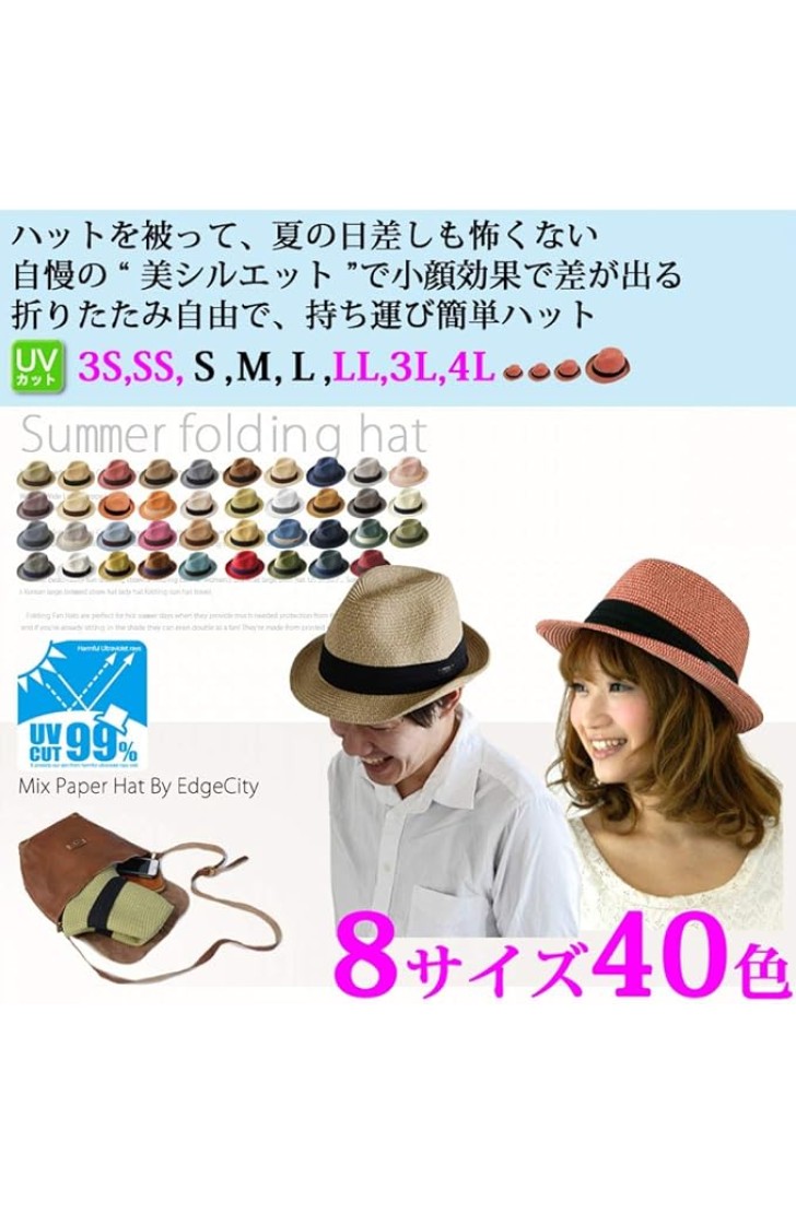 [エッジシティー] 折りたたみ可能 大きいサイズ メンズ 麦わら帽子 ストローハット