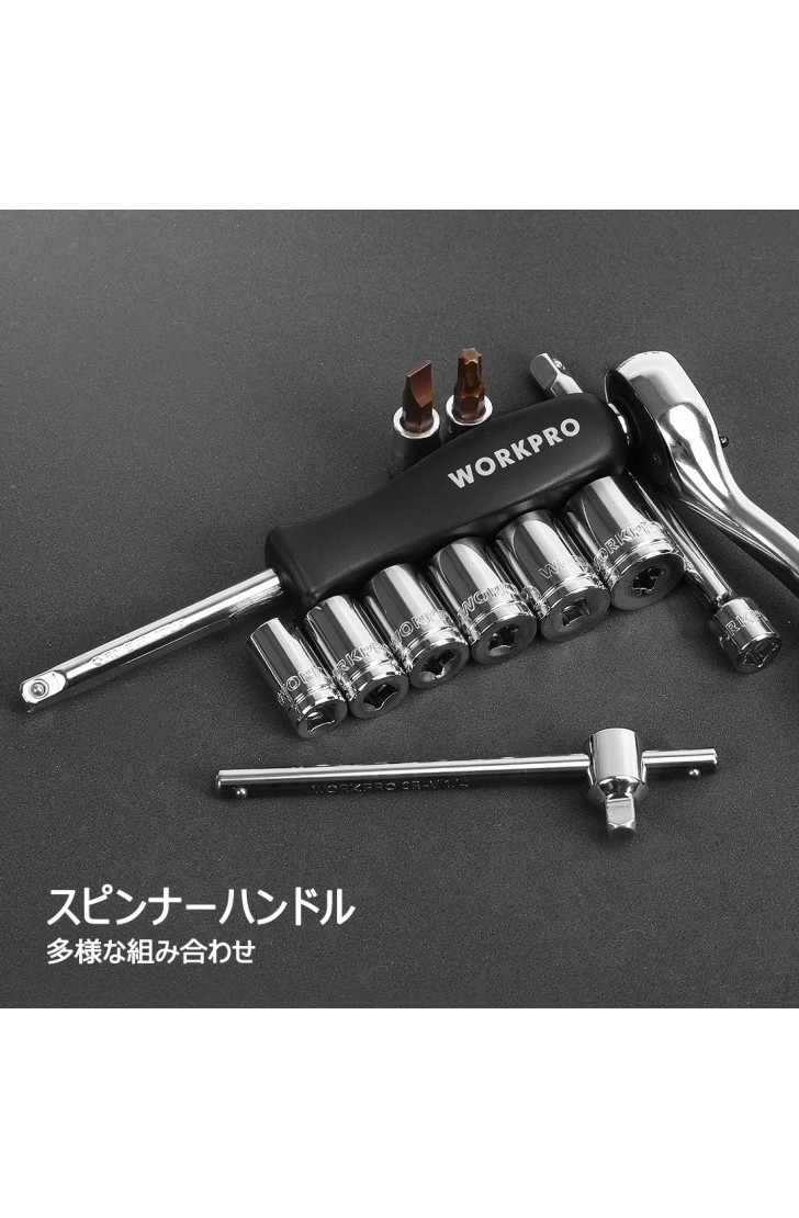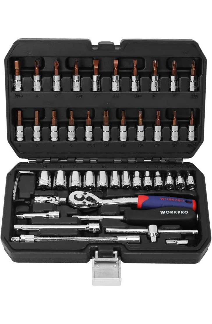 WORKPRO ソケットレンチセット ラチェットレンチ オフセットタイプ 差込角6.35mm(1/4インチ) 46点組 自動車修理 車メンテナンス ガレージツールセット 作業セット 工具 道具 専用収納ケース付属