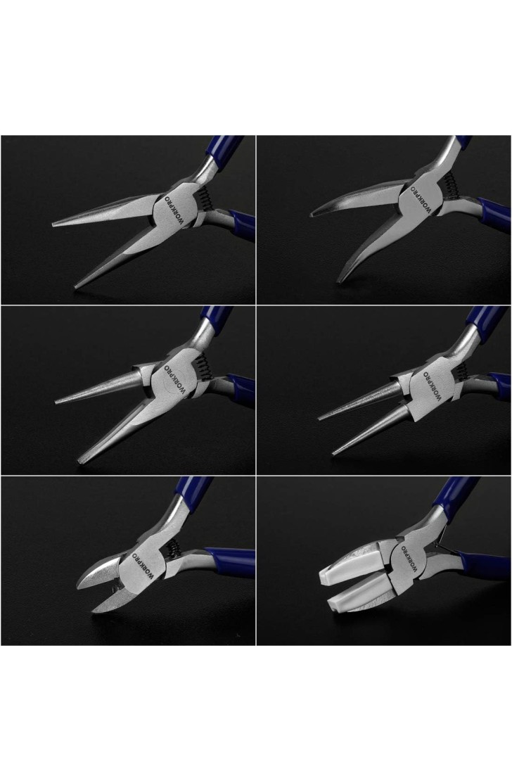 - 【豊富なセット内容】14cmナイロンジョープライヤー*1pc、12.5cm溝ありヤットコ*1pc、12.5cm先曲ペンチ*1pc、12.5cm平ペンチ*1pc、12.5cm丸ペンチ*1pc、10cmニッパー*1pc、銅の指カン1枚、専用収納ケース1pc。詳しい使い方は下記の商品説明にご参考をくださいませ。