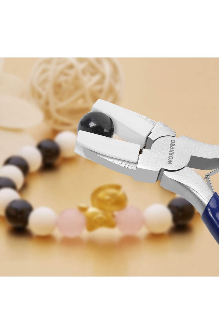 WORKPRO アクセサリー用工具セット 8点セット 手芸ペンチセット ペンチ 平ペンチ 丸やっとこ ニッパー 精密手作り ビーズ製作 クラフト ハンドメイド DIY 道具 スプリング式 自動開き 収納ケース付き