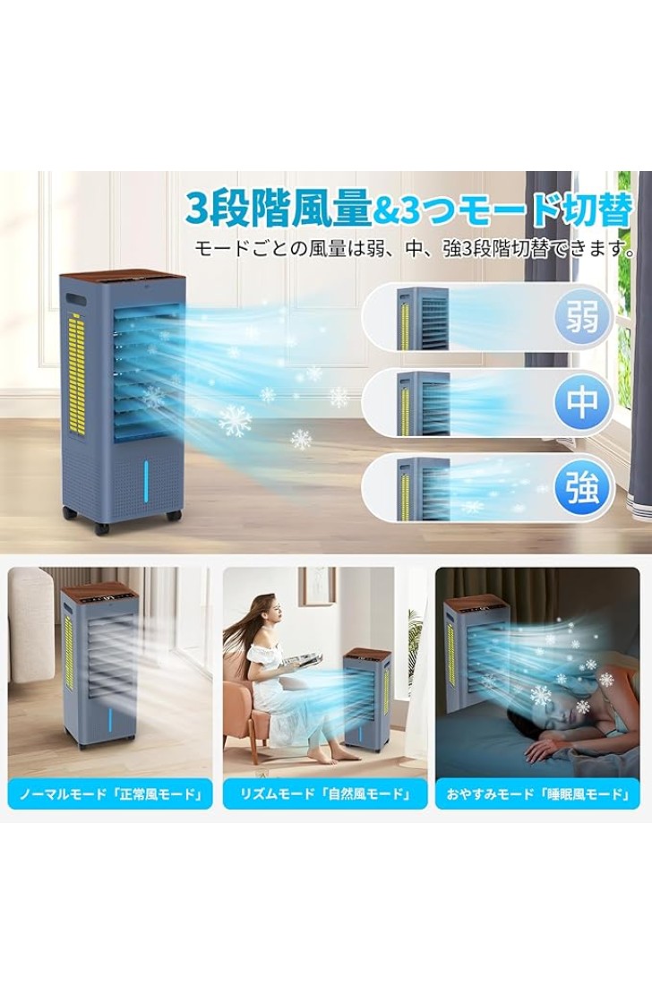 - 【LED液晶画面・3つモード・3段階風量切替・超省エネ設計】弊社の 扇風機 はLED液晶ディスプレイを搭載し、日本語パネルなので、普通品のボタン式や機械式の冷風扇と比べると、分りやすいです。冷風機 は正常風、自然風、睡眠風3つモードを切り替わりながら、モードごとも弱、中、強3段階風量を調節できます。「正常風モード」は設定した風量で運転します。「自然風モード」は自動的に風量が変化するため、自然の風に近い風を送ります。「睡眠風モード」は時間が経って弱くなっていく風。快眠をサポ一トし、寝るごろには風量が弱まりますので睡眠中は風量を弱めたい方におすすめします。また、最大消費電力は60wので、強モードで8時間運転しても1日あたりの電気代はわずか12.48円!超省エネタイプです!