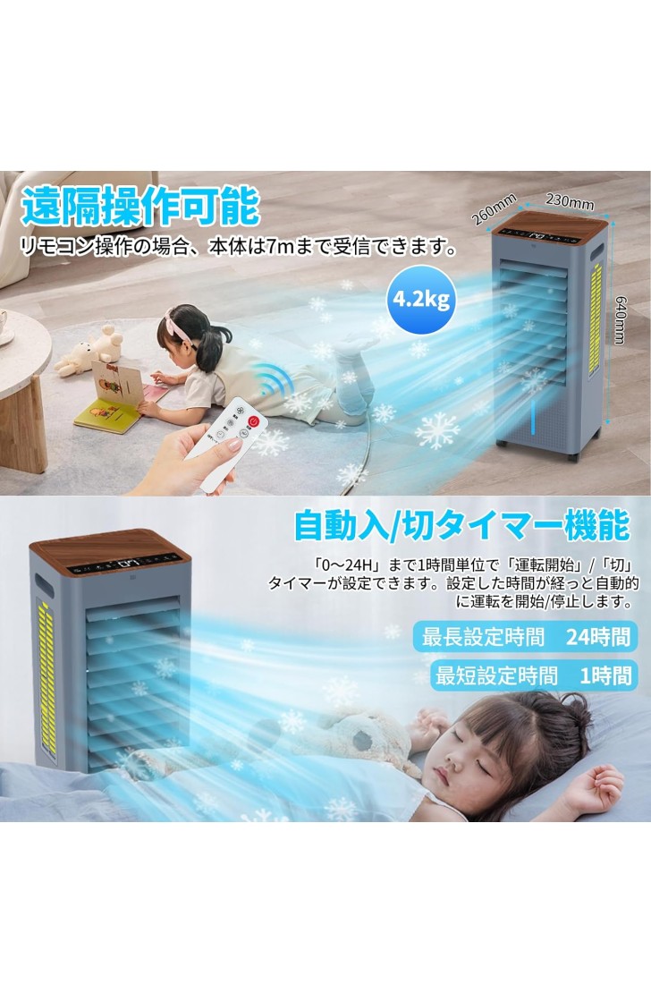 - 【自動電源OFF/ON・24時間入/切タイマー機能・静音運転】冷風扇風機 は便利な1〜24時間入/切タイマー付きで、寝入るまでの間だけ使いたいときや、外出ときに便利!設定した時刻に自動でオン・オフするタイプで、経過時間を指定して自動入/切タイマーができ、効率的な運転が可能です。特に就寝時に睡眠モードと併用すると、涼しい心地よく寝られながら電気代も低くなります。【静音運転】約45dBの動作音は睡眠や読書、仕事にお邪魔にならなくて、就寝時などに安心に利用できるスポットクーラーです。ご注意:動作音は風量の強弱によって違う場合もございますので、ご了承ください。