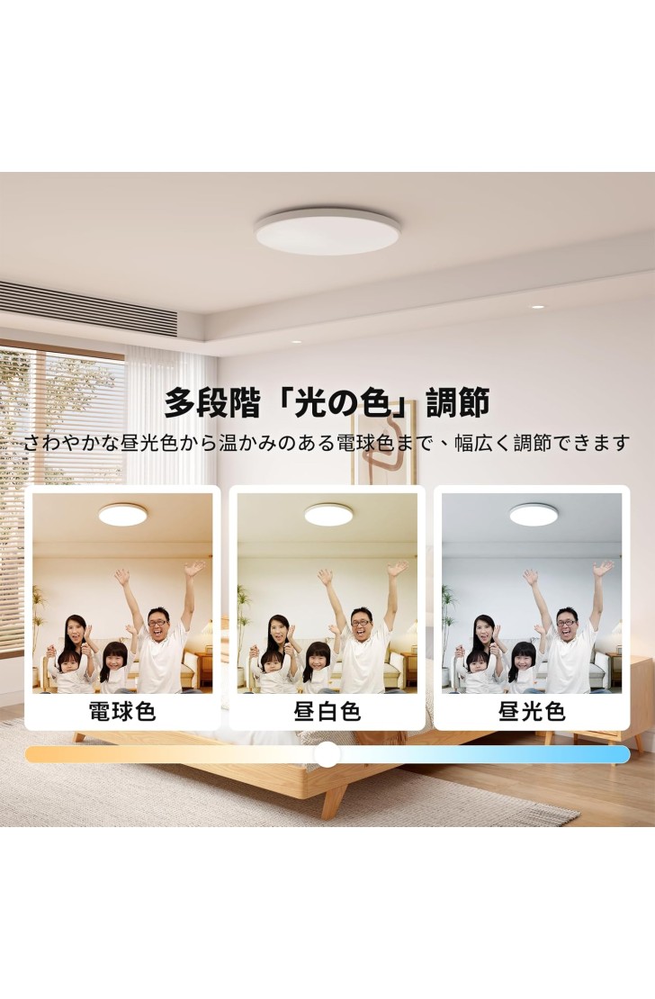 - 【12段階調光+7段階調色】○多段階調整:リモコンで、12段階の明るさ調整(10~100%)と7段階の色温度調整(電球色3000k~昼光色6500k)できます。勉強や読書の時にスッキリした昼光色にしたり、家族団らんやリラックスの時に暖かい電球色にしたり、シーンに合わせて適応な色に調整できるため、このしりんぐらいと一つ機種でリビング/キッチン/寝室/書斎等あらゆるシーンに満足できます。 ○ワンータッチ切り替え:リモコンや壁スイッチで、ワンータッチで3つ色温度を切り替える(電球色/昼白色/昼光色)