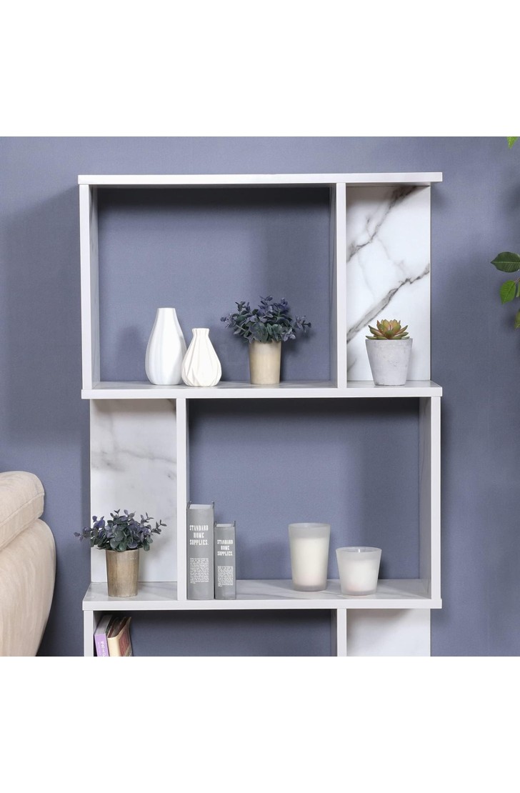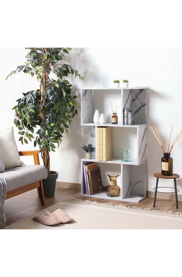 不二貿易(Fujiboeki) オープンラック シェルフ 3段 幅59×奥行24×高さ106cm 大理石調 S型 収納棚 ディスプレイラック 組立商品 59285