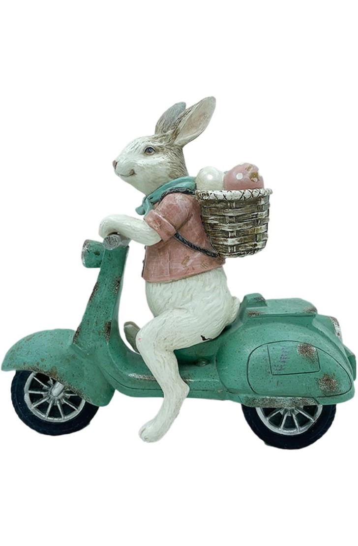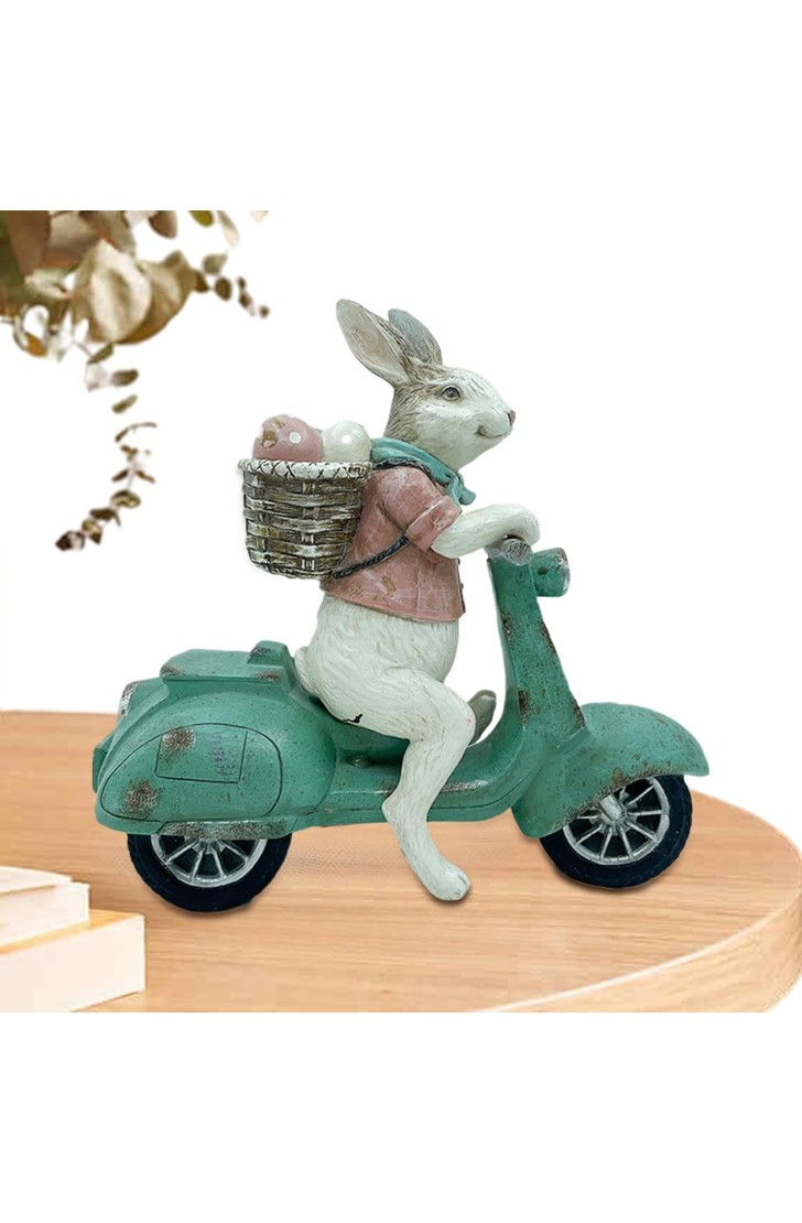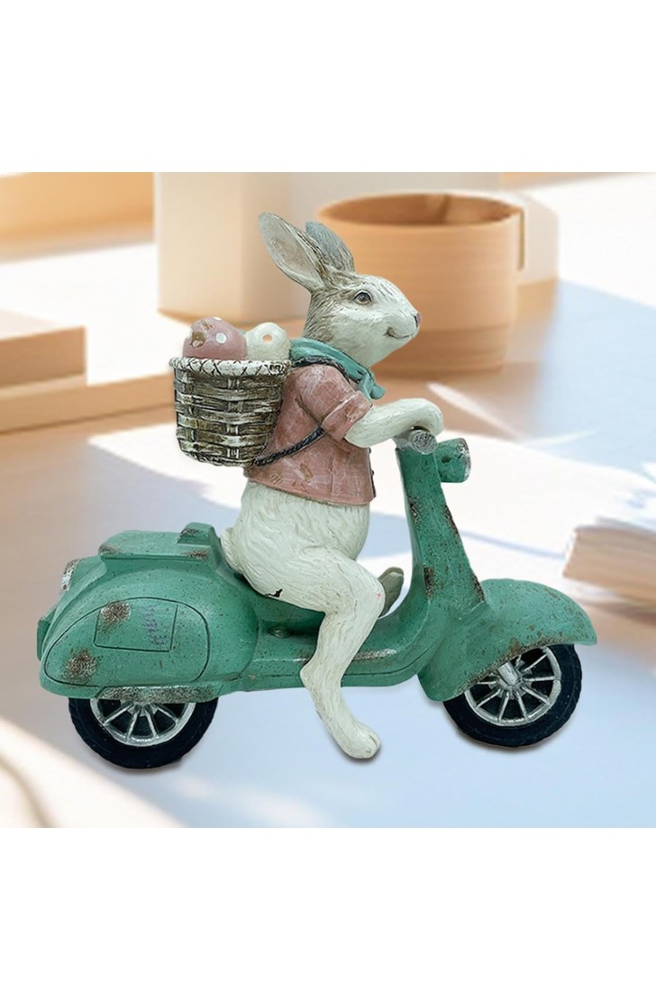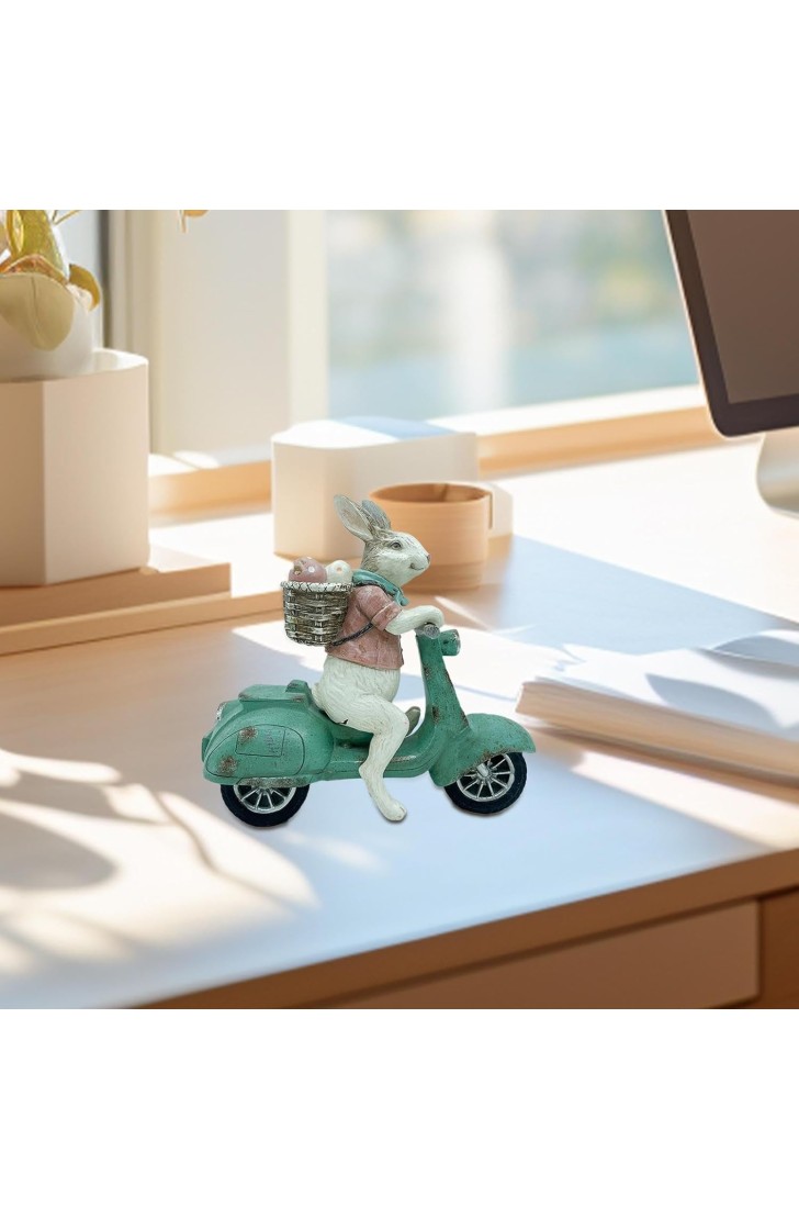 ウサギに乗ってオー, トバイの彫刻、ウサギの像屋内 - かわいい動物の像アートオーナメント | 卓上デスク装飾、イースターホーム用乗馬バイクウサギ像