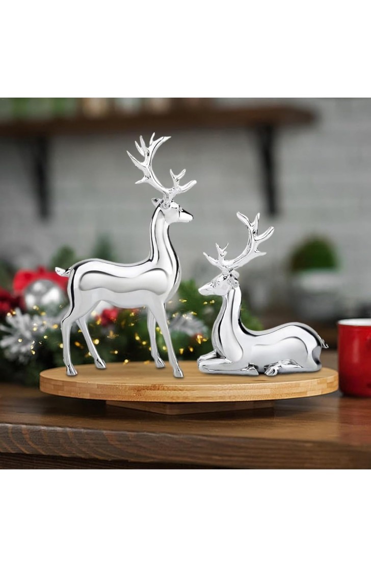 - エレガントなトナカイ装飾:高級シルバーカラーの2頭のトナカイ像を備えたこの合理化された芸術的なデザインで、ご自宅にシンプルで贅沢な感覚を加えてください。